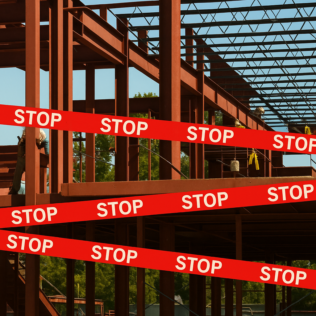 Caused a complete site shutdown, damaging installed rebar and halting construction indefinitely